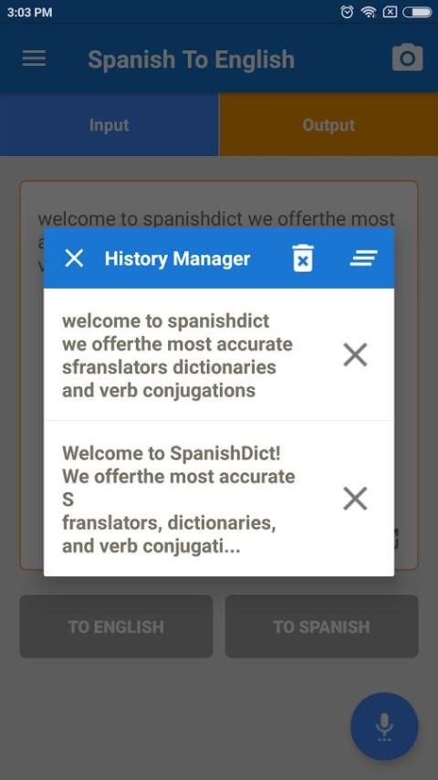 - Легко управлять историей на испанского на английский.