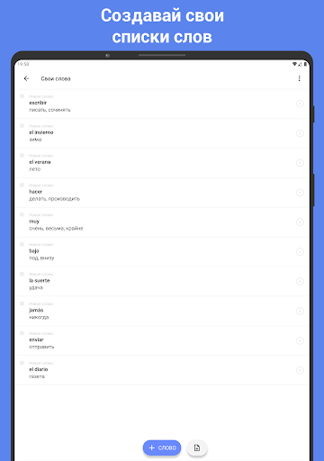 Изучение испанского языка ещё никогда не было таким простым! Изучайте испанские слова и улучшайте свой словарный запас в приложении ReWord!
