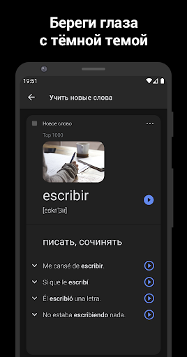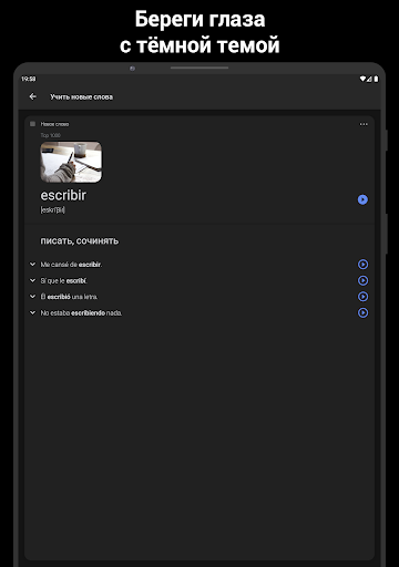 • Ночная тема для комфортного изучения испанского языка перед сном.