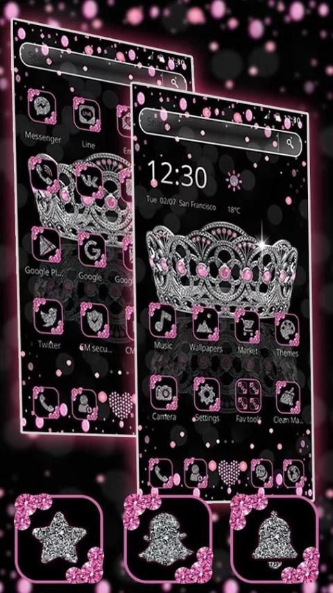 Новый Look- Попробуйте розовую тему короны, чтобы дать новый взгляд на ваш телефон и заменить тему по умолчанию с захватывающей темой.