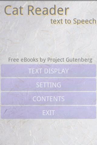 This application has a texttospeech feature of Android.TTS engine support.DescriptionCatReader texttospeech, the best Android reader It is the ultimate choice for reading ebooks available free of charge by the author.CatReader offers you abundant free book resource, best reading experience and excellent books management. Onetouch selection famous book is often read.Automatic scroll, does not require cumbersome page turns.This application has a texttospeech feature of Android.TTS engine support.Keep your eyes health setting for longtime reading.Downloaded BooksA Princess of MarsThe Kama Sutra of VatsyayanaAdventures of Huckleberry FinnThe Adventures of Sherlock HolmesPride and PrejudiceGrimm39;s Fairy TalesMetamorphosisAlice39;s Adventures in WonderlandHow to Analyze People on SightUlyssesLeaves of GrassFrankensteinThe Gods of MarsGreat ExpectationsA Tale of Two CitiesThe Adventures of Tom SawyerThe RepublicDraculaThuvia, Maid of MarsWarlord of MarsThe Importance of Being EarnestWar and PeaceJosefine MutzenbacherThe Count of Monte CristoGulliver39;s Travelssecret AdversaryMoby Dick, or, the whaleOliver TwistA Study in ScarletA Modest ProposalThe Time MachineThe Picture of Dorian GrayDon QuijoteThe Complete Works of William ShakespeareDublinersThe Chessmen of MarsThe Return of Sherlock HolmesEmmaThe Mysterious Affair at StylesTreasure IslandThe Essays of Montaigne CompleteHeart of DarknessA Christmas CarolWaldenThe War of the WorldsSiddharthaAround the World in 80 DaysThe Romance of LustThe Memoirs of Sherlock HolmesThe Works of Edgar Allan Poe Volume 1The Wonderful Wizard of OzLatin for BeginnersSense and SensibilityPeter PanThe jungle BookThe History Of The Decline And Fall Of The Roman EmpireThe Practice and Science of DrawingThe Gods of MarsDavid CopperfieldThe Communist ManifestoAnne of Green GablesAnna KareninaThe Everyday Life of Abraham LincolnThe Three MusketeersLeviathanMy Man JeevesThe Call of the WildThe Works of Edgar Allan Poe Volume 2Beyond Good and EvilThe Hound of the BaskervillesCrime and PunishmentThe Brothers KaramazovRobinson CrusoeThus Spake ZarathustraThe Romance of Lust