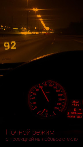 В Ночном Режиме можно проецировать скорость на лобовое стекло автомобиля.