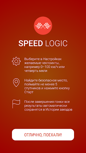 Замерьте разгон, торможение, квотер и максимальную скорость вашего транспортного средства. Сохраняйте результаты заездов и делитесь с друзьями.