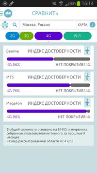 -Сравните показатели операторов: приложение Sensorly дает вам доступ не только к данным, собранным у вашего оператора, но также и к информации об операторах, доступных в вашем регионе. С помощью функции "Сравнить" вы сможете проверить уровень сигнала и покрытие сети для всех перечисленных операторов, для которых у нас