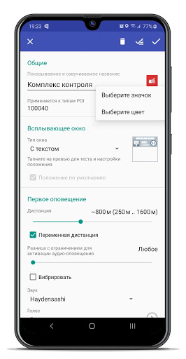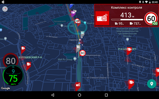 Опасности в реальном времени. Можно отмечать мобильные засады, радары ДПС или свежеустановленные камеры и предупредить таким образом других водителей. Требуется подключение к интернет.