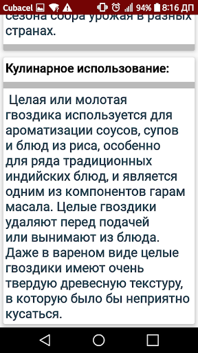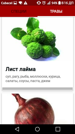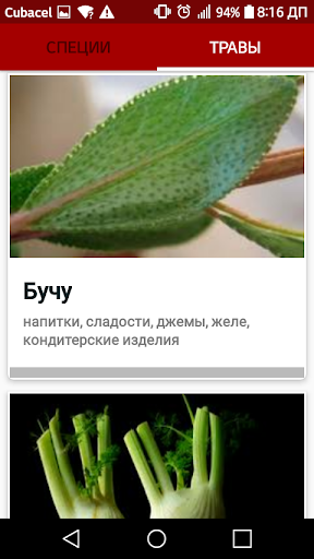 ПРОСТО В ИСПОЛЬЗОВАНИИ: у вас будет список всех специй и трав , и вы можете выбрать любой элемент в списке, и вы увидите его описание и его кулинария