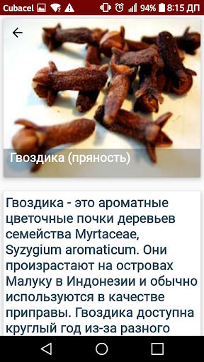 Специи, травы и их кулинарное использование - это БЕСПЛАТНОЕ приложение для Android, которое содержит широкий спектр специй , их описание и их кулинарное использование в соответствии с к типам продуктов.