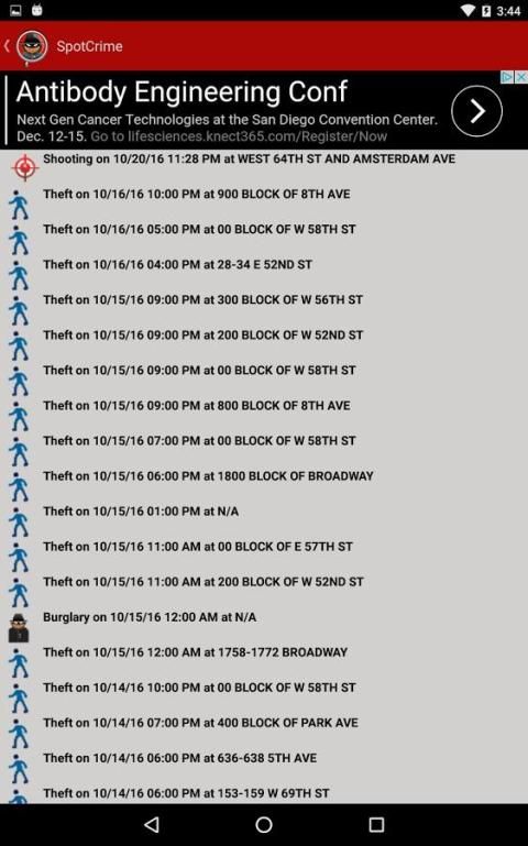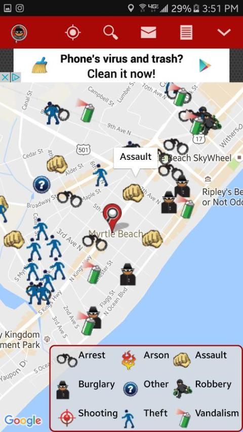 SpotCrime, самый посещаемый карта преступности в США, в настоящее время предоставляет приложение для Android устройств в Google Play Store, чтобы помочь держать вас и вашу семью в известность о преступлении в вашем районе и когда вы путешествуете.