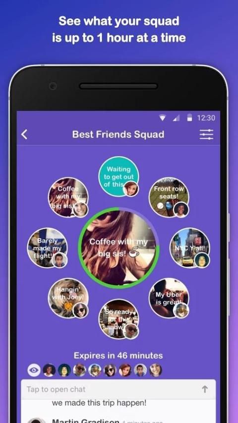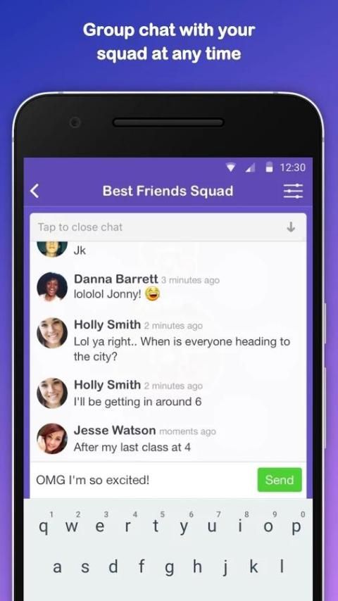 Создать свой отряд и добавить друзей из списка контактов или по имени пользователя. Встряска отряд, чтобы получить живые обновления статуса по требованию из ваших ближайших групп друзей. Добавьте свой статус с текстом, фото и многое другое!