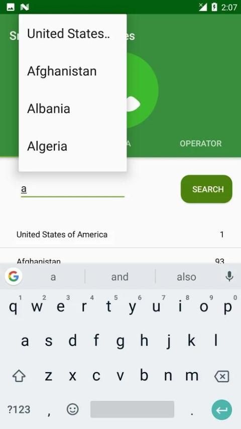 * Поиск на основе название страны / код страны