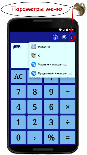 Простой, простой в использовании калькулятор, разработанный, чтобы быть более функциональным, чем установленная по умолчанию модель - также включает в себя Чаевые Калькулятор и Кредитный Калькулятор, оба из которых могут быть доступны из меню - особенности основных калькулятор включают в себя: