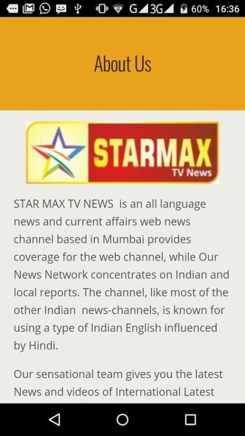 СТАР MAX TV NEWS является новостной канал веб-все новости языка и текущие дела в Мумбае обеспечивает покрытие для веб-канала, в то время как Наша News Network концентрируется на индийских и местных сводках. Канал, как и большинство других индийских новостных каналов, известен с использованием типа индийского английского языка под влиянием хинди.