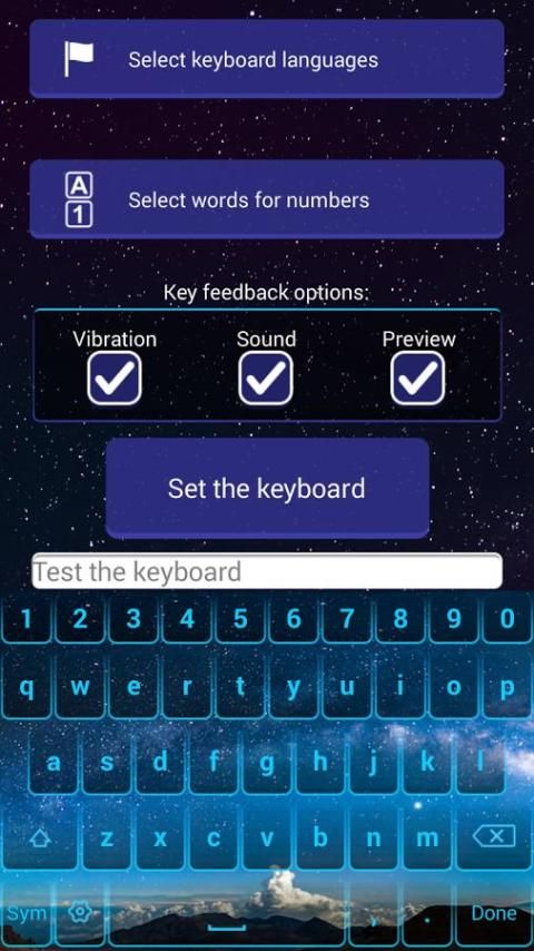 Исследуйте неизвестные пространства с этой великолепной редактор клавиатуры и найти себя в середине Млечного Пути. Помните все те времена, когда вы были поражены, наблюдая небо, полный блестящих звезд. Теперь вы можете испытать, что еще раз на вашем новом дизайне клавиатуры во время набора текста, смайлики Emojis и звезды символы в ваших SMS текстовых сообщений или электронной почты. Поиск в Интернете и общаться с друзьями в социальных сетях, наслаждаясь клавиатуры искусство. Мы создали этот удивительный "звездное небо" клавиатуры тему, просто для всех вас мечтателей там. Глядя на эту тему прохладном, вы представьте себя среди десятков сверкающих звезд. Оставайтесь с улыбкой на лице в течение всего дня и скачать эту удивительную тему смены бесплатно!