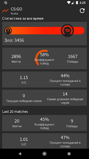 🔸 Проведенные матчи, процент побед, соотношение побежденных врагов/смертей, % попаданий в голову.