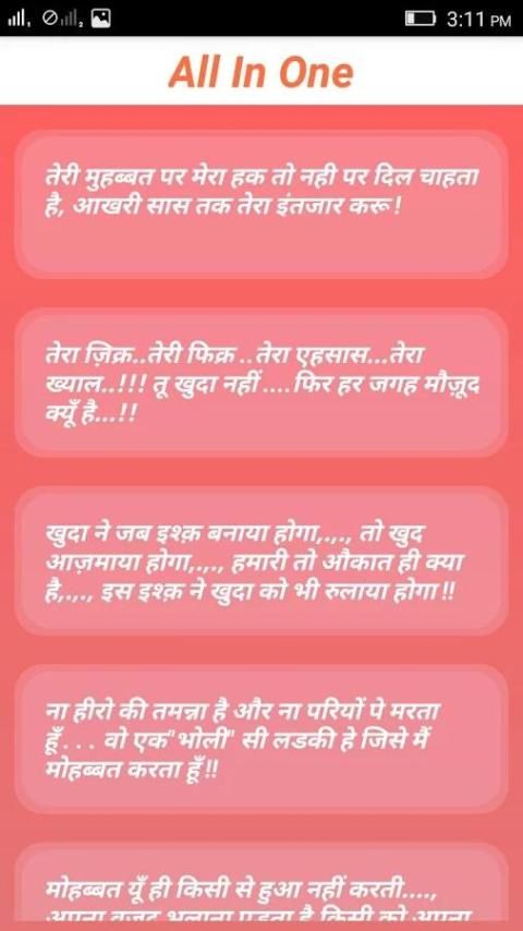 Это приложение содержит статус на хинди и английском языках и Shayari и смс хинди языках.