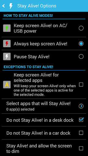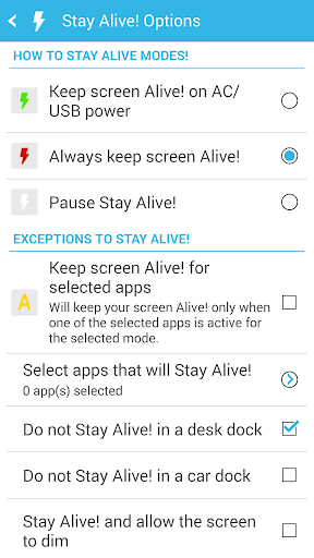• Easily pause Stay Alive! when not needed from the notification zone. No need for a widget!