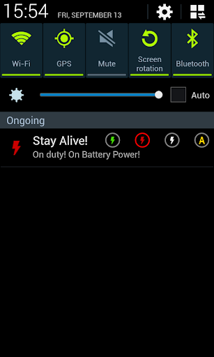 Easy power operation mode changes with the notification icons! It will show you which power mode you are using and allow you to quickly change between modes. You can also quickly activate the Stay Alive for specific application mode!