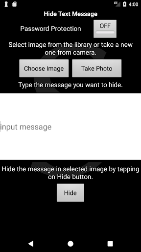 - скрыть сообщение в выбранном изображении из фото библиотеки или в взятых фото из камеры