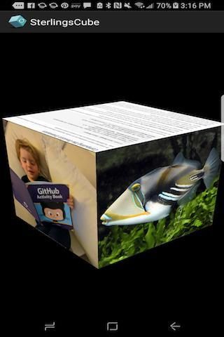 3.) Поверните куб с пальцем, чтобы увидеть мою кошку, используя свое любимое приложение, мой любимый вид рыбы и т.д.