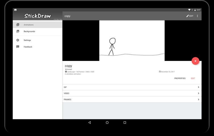Это очень простой в использовании. Рисовать пальцами. Переход от одного кадра к другому. Сохранить и ваша анимация и работает в течение нескольких секунд. StickDraw отлично подходит для анимации ваших фигурки / чела рисунков палки или создания анимации движения остановки.