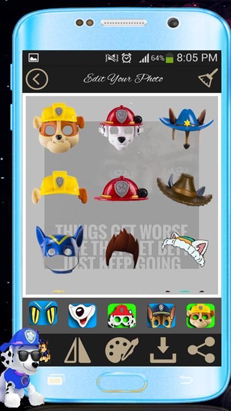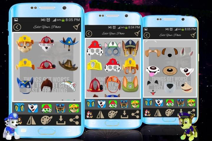 Вы любите редактор камеры наклейка фото? Наклейки на фотографии Paw Patrol является переключателем приложение для делать смешные фотографии для лапу щенка.
