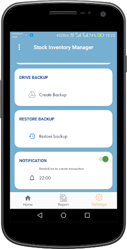 Инвентарный менеджер инвентаризации имеет функцию, позволяющую пользователям восстановить резервную копию, созданную в определенное время. Эта особенность имеет значение, поскольку в случае удаления приложения или потери телефона вы можете загрузить приложение еще раз и восстановить резервную копию.