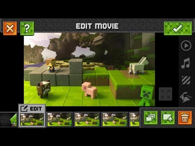 После того как вы создали свой набор и ваш бросок на месте, Minecraft Стоп-Motion Movie Creator превратит ваш iPhone, IPAD или IPod Touch в анимационной студии, давая вам возможность записывать все, что вы можете себе представить, один волшебный кадр в время. И весело не останавливаться на достигнутом. Приложение включает в себя инструменты редактирования, визуальные фильтры, оригинальные музыкальные треки и звуковые эффекты из игры, чтобы помочь вам создать наиболее эпического фильма когда-либо! Когда вы закончите, сохраните ваш фильм в библиотеку, чтобы посмотреть позже, а начать создавать свой очередной шедевр кино прямо сейчас!