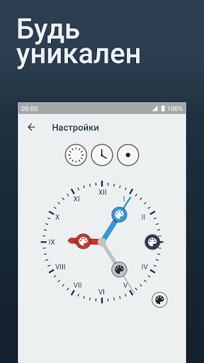 В приложении есть возможность настроить цвета и внешний вид циферблата и стрелок.