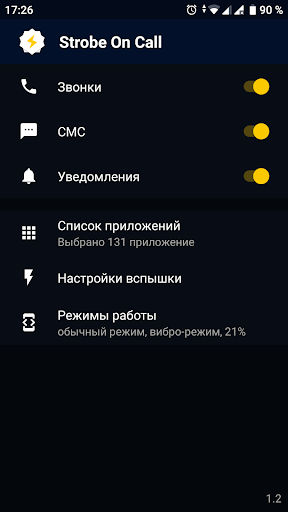 Strobe on Call мигает вспышкой на входящие звонки, sms и уведомления от приложений.