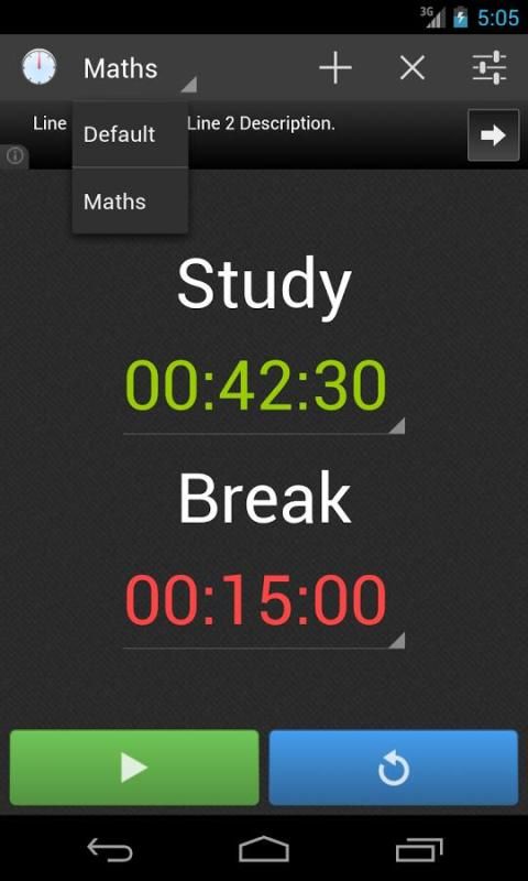 Простой таймер приложение, которое я создал, чтобы помочь мне протолкнуть те трудные времена, когда я потерял мотивацию при изучении. Разрушение свое время в небольшой включения / выключения секций (например, исследование 30 минут, затем 30 минут перерыв) помогает мне учиться, зная, что я могу взять вину бесплатный перерыв очень скоро. После того, как каждый таймер закончит появится соответствующее уведомление говорю вам, чтобы вернуться на учебу или сделать перерыв.
