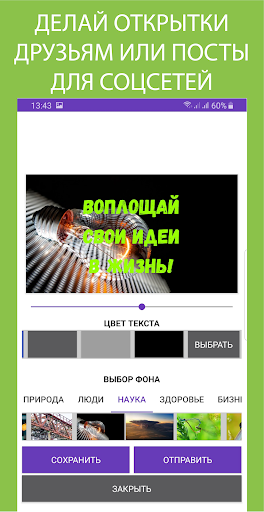 4) Отправляй или сохраняй созданную открытку с твоим текстом