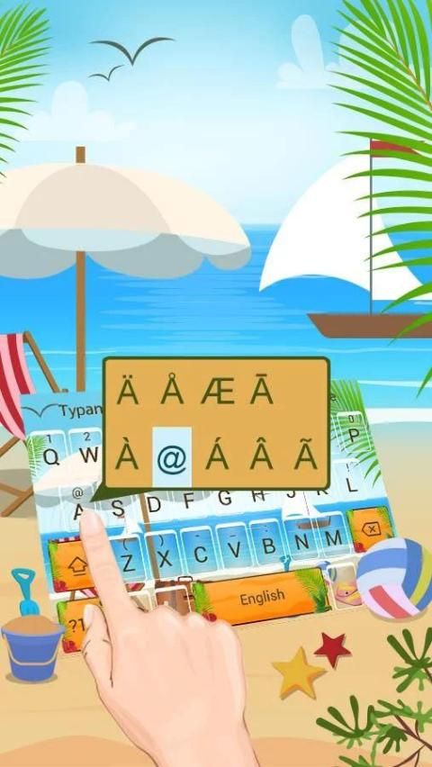 Летнее время на пляже клавиатуры тема разработана специально для пользователей Typany клавиатуры.