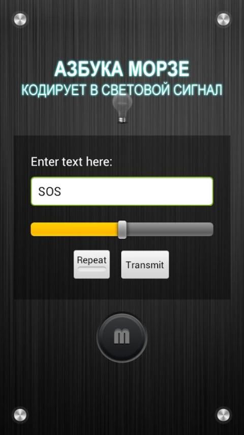 - Кодировка "азбукой Морзе" любого сообщения. Передается посредством светового сигнала.