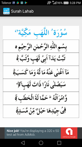 This app contains Surah Lahab, Read & Listen and Read Listen