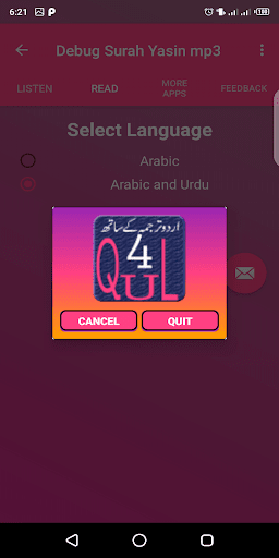 • Это приложение предлагает широкий спектр языков для Суры А в настоящее время доступен в урду, английском и арабском языках.