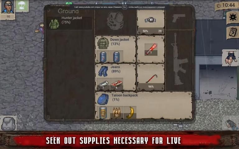 Перемещение по игровому полю, персонаж находит различные интересные вещи, например, заброшенный автомобиль, который может служить источником полезных находок. В игре на выживание, вы можете также столкнуться с непредвиденными жителей этой территории - инфицированных жителей. В таких ситуациях необходимо вступать в бой с противником, так как такие встречи не несут никакой пользы для персонажа. Стоит отметить, что после боя герой может получить некоторые травмы, он может начать кровоточить, который будет отображаться на дисплее игры. Чтобы помочь характеру, вам нужно использовать бинты, рвать футболку или использовать подручные материалы.