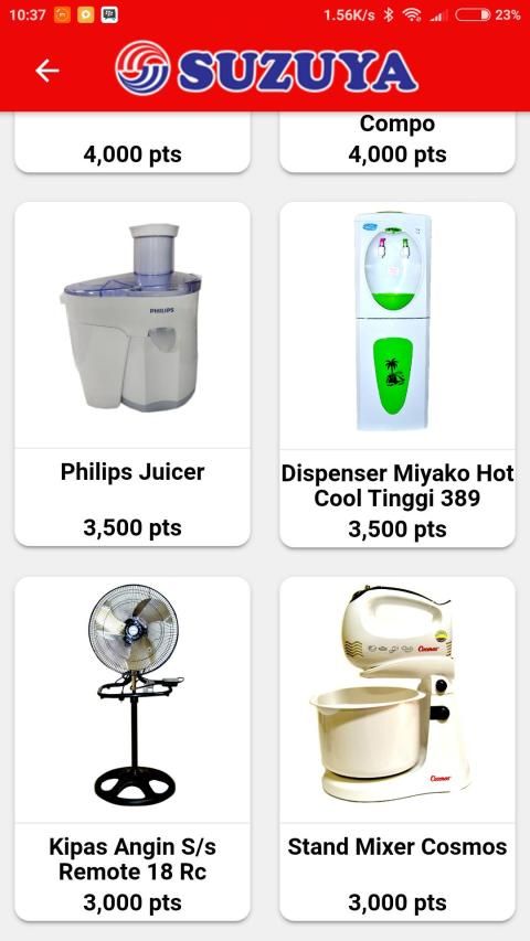9. Anda dapat menukarkan point belanja berhadiah Anda dengan hadiah – hadiah di seluruh SUZUYA.
