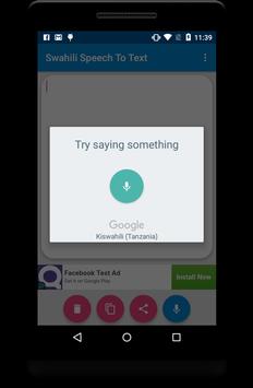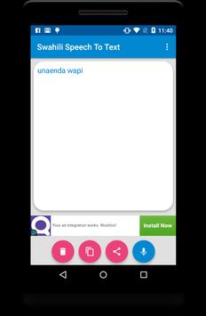 ✓ Press mic button and speak in Swahili to get Swahili text typed automatically.