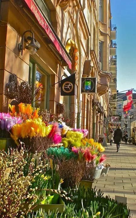 56) Весна в Стокгольме с деревьями цветущие
