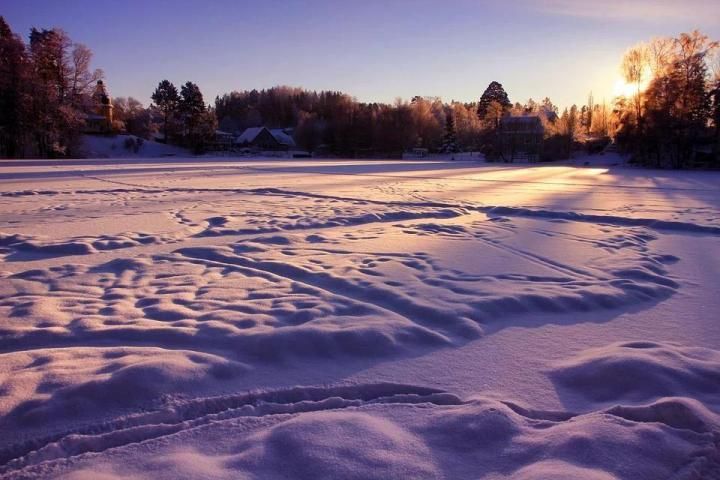 19) Замерзшее озеро на закате