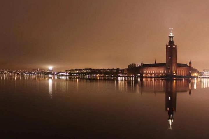 53) Ратуша в Стокгольме в ночное время