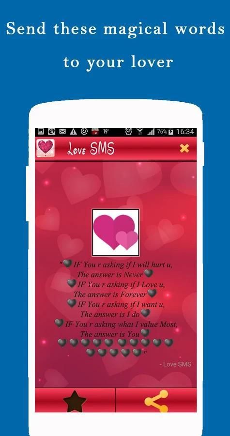 ♥ Любовь Сообщения хороший Android приложений. она содержит коллекцию особой любви Сообщения - Romantic - ASCII Любовь SMS и предлагать сообщения для вашей любви.