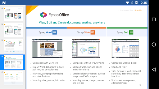 Without sigh-up, you can view MS Office, PDF documents quickly and easily with Synap Viewer. As one of the best professional document processing companies, we have the best technical skills and know-how which have accumulated over the past 18 years. With our cutting edge technology, we have differentiated our app. over other mobile viewers.