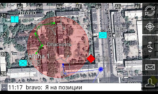 Система управления для военно-тактических игр - страйкбол, лазертаг, тактический пейнтбол, хардбол. Система позволяет видеть участников боя на карте в режиме реального времени, ставить отметки, цели, отправлять сообщения.