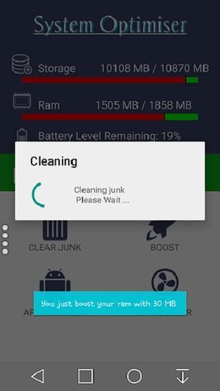 Система Оптимизатор является единственным все-в-одном скорость руля, очиститель мусора и антивирусное приложение, которое оптимизирует ваши фоновые приложения, пространство памяти, мусорных файлов (кэш) и питания от аккумулятора.