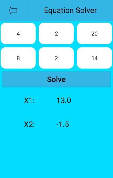 Это полезное приложение, которое может решать системы линейных уравнений. После выбора, сколько уравнений вы используете просто ввести коэффициенты для каждой переменной, а затем нажмите кнопку решить.