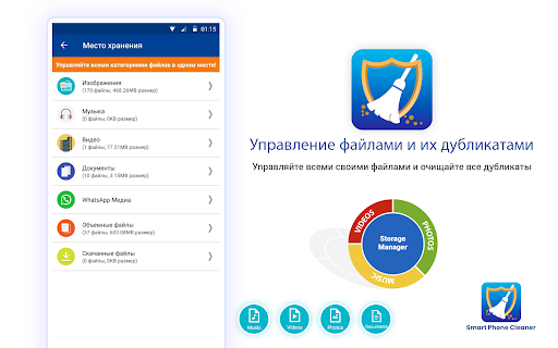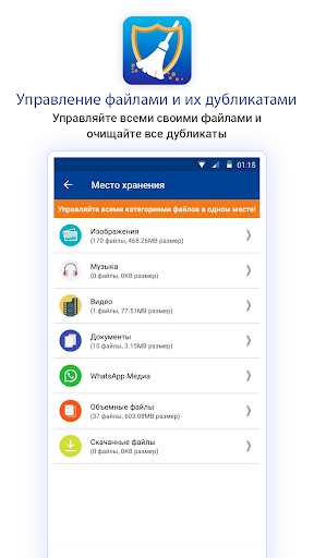 Сделайте наилучшее использование File Explorer для эффективного управления файлами, хранящимися на вашем устройстве.Это удивительная функция, предлагаемая Cleaner для Android для классификации файлов и папок.Кроме того, он позволяет делиться, удалять и выполнять резервную копию ваших файлов.Это позволяет быстро сканировать ваше устройство на наличие дубликатов на основе их имени файла, контента и типа файла.После того, как дубликаты обнаруживаются, выберите их быстро с помощью автоматической марки и удалите их для восстановления значительного места для хранения.Благодаря интеграции приложения анти-мультеров вы можете легко сканировать вредоносное ПО и предотвратить повреждение и инфекцию данных.