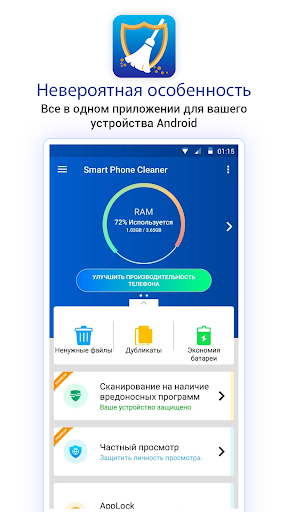 Cleaner for Android-универсальное приложение для устройств Android.Это повышает и оптимизирует производительность вашего устройства Android, при этом удаляя нежелательные приложения и файлы для восстановления пространства.С помощью усилителя с одним Tap вы можете очистить все файлы кэша в течение быстрого периода времени.Он также оптимизирует батарею телефона, очищает все мусорные файлы, управляет приложениями и даже защищает ваше устройство от атак вредоносных программ.Все эти модули создаются для повышения общей производительности устройства.