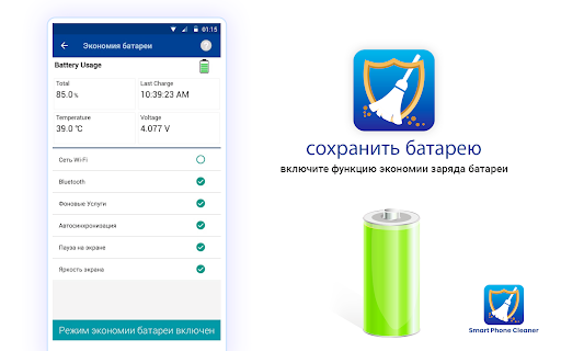 Cleaner для Android позволяет анализировать использование батареи вашего устройства и завершает приложения, которые вызывают дренаж аккумулятора.Дренаж аккумулятора может быть связан с приложениями, которые больше не используются, или теми, которые работают на фоне.Это позволяет вам закрыть такие приложения и сохранять питание аккумулятора.Более того, это также показывает температуру устройства.Вы можете улучшить свой игровой опыт благодаря своей функции Speed Up.Он освобождает оперативную память, чтобы придать вашему устройству значительный повышение скорости.Кроме того, он закрывает фоновые процессы запуска для повышения производительности игр.