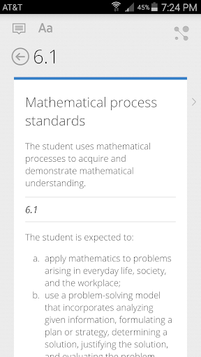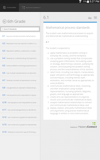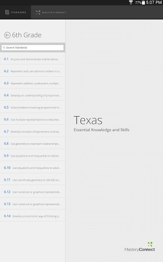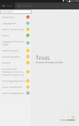 View the Texas Essential Knowledge and Skills in one app! A great reference for teachers, parents, and students to easily read and understand the standards. Quickly find and search standards by subject, grade level, and key word.